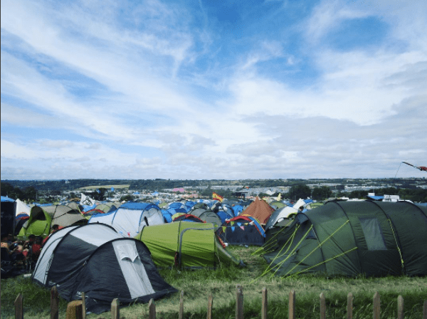 A 2-man tent only fits one person. Don’t be deceived! The £18 2-man tent from Tesco (online with click & collect) fit my air mattress, bag, and me! That’s it. I didn’t take a pillow, just rolled up my jumper to sleep on. And I found I never really needed the torch – there are so many lights in Glasto that throughout the whole night it never really gets dark. Even for a 2am toilet trip it wasn’t so necessary.