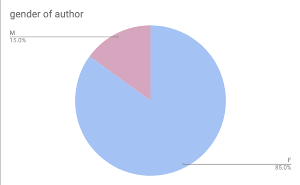 You can see I read mostly authors from the US and UK. I’d like to read from a wider range of authors with more diverse backgrounds and cultures.